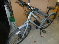 Used Welcome to this listing for an Analog Motion electric AM1 bike. The bike is presented in used, but very good condition and is free from faults and can be ridden immediately. Analog Motion was a British bike company which launched the AM1 as a commuter bike in 2015. The whole idea was that the bike should differ as little as possible from a standard pedal bike, except for the fact that it was powered. The bikes used high quality lightweight frame tubing and were easily lifted to put on roof racks, etc. The battery is a similar size to a water bottle and is easily removed for charging off of the bike, so ideal for people in flats, etc where they don't have to haul the bike up flights of stairs to charge it. Ditto for commuters, who could just take the battery into work and charge it at their desk ready for the ride back home after work. As soon as the bike was launched it won a number of awards, including a Sunday Times design award. They were built only to order and were one of the first bikes to be available online only. The only options were frame size (small, medium, or large) and cross bar or step-through design, together with additional chargers and/or batteries. The bike has no gears, just a single speed chainwheel (it is designed as a commuter remember). There are high quality disc brakes front and rear and a side stand. The motor is rear hub mounted and has five levels of assistance. A thumb throttle is fitted but this was deliberately disabled on UK sales to comply with legal requirements. The makers claimed a range of 25-35 miles per battery - dependent upon the usual things like number of hills, size and weight of rider, etc. The battery charges from dead in around 2 hours. I purchased this bike brand new in 2016 for my wife, and it has been excellent. I have serviced it regularly (I used to work in a cycle shop many years ago), but it is testament to the quality of the bike originally that it has held up so well. There are some odd scratches - mostly from taking it on and off of various bike racks over the years, but it is nine years old. You will see from one picture that there are some local patches of corrosion on the rear mudguard. I could have rubbed this down and repainted it, but felt it better to show the bike as it is. It is finished in a fetching and rather trendy satin grey colour with black wheels and fittings, and is a medium frame size. The digital display shows a total distance covered from new of 873 km, which is nothing for a nine year old bike. The bike has always been garaged. With the bike is supplied an extra battery, and the AM charger unit. The extra battery has proved useful when my wife and I have undertaken longer rides, as it has given an effective range of around 50-60 miles, if you don't go too mad with the pedal assist. The bike cost £1,300 new in 2016, plus an extra £280 for the extra battery. It is offered for a fraction of that amount, so represents excellent value. Thanks for looking.Upgrades: