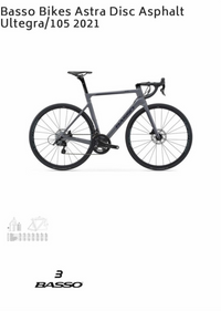 Used Basso Astra ultegra 2022 * Large (56cm) * Ultegra mechanical groupset * Selle italia flite saddle * Vel 50 RSL2 carbon disc wheelset with DT Swiss 240 hubs (£1,099) * Prime doyenne aero bars * Continental gatorskin tyres (700x25mm) Serviced in Feb 2025 with new: * chain * cassette (11/32) * disc brakes * brake pads * Prime doyenne aero bars fitted * Vel 50 RSL2 wheelset fitted * Continental gatorskin tyres fitted July 2025: had the stem and expansion plug changed to the Pro vibe stem 10. (Still have the basso stem which will come with the bike as well). Had a common fault issue with the headset and changing the stem and expansion plus fixed the issue. Crank and Bottom Bracket was stripped, cleaned, re greased and refitted. Serviced again in Sept 25 Had new chain and cables. Bike is very comfortable and light. Perfect for long rides and climbing.