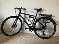 Used Like new, ridden only twice and stored inside since. Comes with rear rack, good quality D lock with mount, and various accessories if wanted like Lazer helmet, good quality lights, waterproof cover, pannier bag.Upgrades: