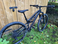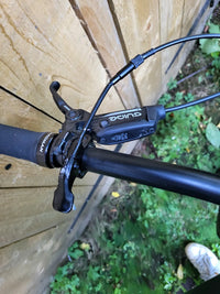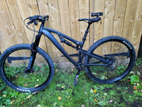 Used Full suspension & dropper post Great bike for mountain bikining and city commute. Some small scrapes on the frame as can be seen and sadly a larger white scrape at the front of the bike. Serviced before the summer. Kept only indoors. The frame says it Small but the bike definitely feels like a medium. Before buying please make sure to check out manufacturer's size recommendation. Only selling as moving to Canada. Its really great bike.Upgrades: