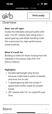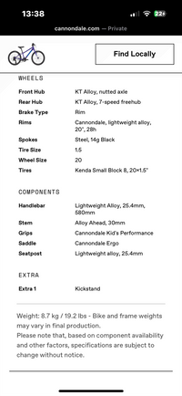 Used Excellent bike for a child age 5+ it’s lightweight and super smooth. The frame is immaculate and a strong sign of how durable it is, as the chain is completely rusty so needs replacing and the tyres are flat so will need servicing.Upgrades: