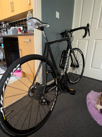 Used I bought the bike from decathlon as a near brand new. It was listed for £1999. I got it and it’s been sat collecting dust for a few weeks as my iron man training stopped. Comes with a helmet, bottle & set of cleat peddles as well as the flats.Upgrades: