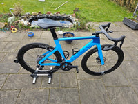 Used This fantastic aero bike was used for approximately 6 months in 2022. Unfortunately due to illness I'm no longer able to cycle and this bike deserves to be ridden. It's is so fast, yet inspires confidence with brilliant steering and brakes. Overall this bike has only done 1000miles, been fully maintained and stored carefully indoors.Upgrades: