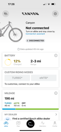 Used Bought new by me in May ’25. Excellent condition with only 196 careful miles. Balance of 2 year Canyon Guarantee. Original purchase invoice available. Only selling as I have another bike and this one isn’t getting used as much as it deserves. RockShox Deluxe Select+ 140mm RockShox Pike Base 140MM Bosch Performance Line SX (latest 60NM update downloaded) Bosch Compact Tube 400WH Upgraded SRAM AXS Electric derailleur Upgraded Bontrager Carbon 29er Wheels with tubeless set up done SRAM Code R Brakes Fixed carbon seatpost and the original dropper 34.9 Weight c19KG RRP £4199 in standard spec without the Carbon Wheels and AXS Available to collect from PO15 near SouthamptonUpgrades: