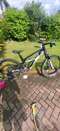 Used The Canyon Spectral Al 5.0 Full Suspension Mountain Bike is a high-quality, lightweight mountain bike crafted from a combination of aluminium and carbon fibre. With a sleek black finish, this German-made bike features 27.5-inch wheels, disc brakes, and thumb shifters for smooth gear changes. The bike also boasts a full suspension system, adjustable seat, and large frame size suitable for unisex adults looking for a top-tier cycling experience on rugged terrain.Upgrades: