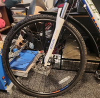 Used IDEAL XMAS PRESENT Hardly used in prefect like new condition, Carrera crossfire 2 hybrid mens mountain bike in white Lightweight aluminium frame,adjustable front suspension, 700c quick release wheels, disc brakes, trigger gear changers PLUS ADDED EXTRAS front and rear extra long mud guards adjustable bottle holder PLUS elbow and knee pads in a bag Everything working perfectly and can be used right awayUpgrades: