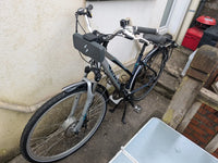 Used There are signs of wear and tear but the bike is perfectly rideable. It comes with the following accessories (as seen in the photos) Quick release battery (and charger), Speed/battery indicator, Mudguards, Heavy duty kick stand, Bottle holder, Pannier rack, Bell.Upgrades: