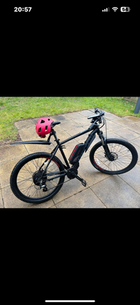 Used Selling my Carrera Vengeance E electric mountain bike in excellent condition, fully functional with no issues. Perfect for commuting, trail riding, or weekend adventures. Always stored indoors and well maintained. Motor: Suntour Eco rear-wheel drive, Battery: 36V 317Wh removable lithium battery (charges perfectly), Range: 25–30 miles (up to 40 miles max), Assisted top speed: 15.5 mph, Recharge time: About 6 hours, Frame: 7005 alloy—lightweight and durable, Forks: Suntour XCT30-DS with 100mm front suspension, Gears: 8-speed Shimano, Brakes: Tektro mechanical disc brakes (180mm rotors), Wheels: 27.5” Kenda tires with good tread. Display: OLED multifunction display with integrated controls. Extras included: Red helmet, mudguards, and phone mount. This bike rides smoothly, the battery holds a charge well, and everything functions as it should. Great value e-Mountain Bike ready to ride!Upgrades: