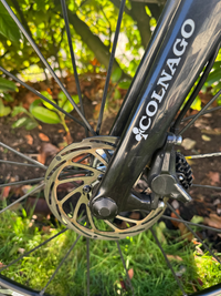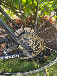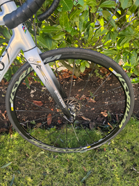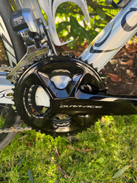 Used Ill health forces sale of beloved machine. Colnago C60 in art deco white/black, full carbon lugged frame. A joy to behold. All up weight 8.4Kg . Colnago carbon seat pin Full Shimano Di2 Dura ace groupset, part from rear mech Ultra Di2 to accommodate 34t sprocket. Mavic Kysirium Pro-Disc wheels and hubs. Tubeless set up with new GP- 5000 25mm tyres. SPD XZT pedals fitted but will change if reqd. Hasn't been ridden since major overhaul by Mapdec of Kendal which included, new tubeless tyres, complete new chainset, chain and cassette, new BB bearings, wheel bearings, headset bearings, bar-tape, Aztec brake rotors and pads, Fizik Arione saddle. Carbon bottle holders. This bike has been ridden prior to above service. Therefore it has some cosmetic blemishes and marks on frame etc. Frame is 51cm C to C along seat tube.Upgrades: