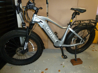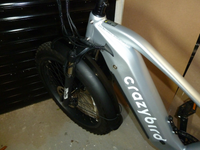 Used Welcome to this listing for a Crazybird Jumper fat tyre mountain e-bike. I purchased this bike brand new back in May this year and it is hardly used – the trip shows a total of 90.8 miles covered. A knee injury is forcing reluctant sale. There are loads of reviews of this boke on YouTube, which I suggest you look at, as they sum it up better than I ever could. I researched thoroughly prior to purchase, and, for the money, there was no bike that reviewed as well as this one. It is a dream to ride. This is the top-spec model, coming with the following optional extras: • Upgrade to 750watt Bafang motor • Crazybird rear carrier and mudguard package • Crazybird suspension seat post. The list price of this bike new is £2,047. I took advantage of a sale back in May, but it still cost me over £1,500 with the options. This is a genuine chance to get a barely used bike at a bargain price. The bike has always been garaged from new and has never been off road. I undertook one decent length road trip back in August (approximately 55 miles) and can vouch for the fact that the battery range will easily undertake such tasks. The manufacturers quote a range of 100km approx., and I would say that is perfectly achievable. The condition of the bike is as new – there is one small scratch on the down tube from loading it onto a bike rack, but that is all. It rides beautifully and has required no maintenance after only 90 miles. The bike has a huge battery which removes with the key, giving the choice of plugging the whole bike in to charge it, or just taking the battery indoors to charge. It comes with the original tool kit, instruction manuals and charger. The Go-Pro mount, bottle holder, and rear lamp bracket shown in the pictures will be removed prior to sale, but the LED front headlamp, horn, and hydraulic disc brakes are standard and will remain. This is a genuine opportunity to grab a bargain, and I will be very sorry to see it go.Upgrades: