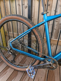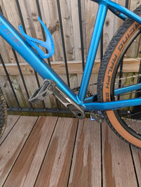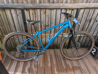 Used Cube Reaction Pro 2023. Hasn't been ridden in a while due to newer bike so just sat in the shed. It does have odd pedals on and we have not been able to remove either pedal and unsure why. Could just be stuck or over tightened but we are unsure. Brake mount on the rear screws are different as the originals had fallen out. It's been a well used bike but now surplus to requirements. It does have scuffs on the paint work but this was used by a child so bare that in mind. Would be ideal as a fixer upper or spares.