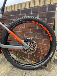 Used Switched too tubeless, control module bracket had snapped during an off but has been strapped to the bars with zip ties, not a pretty job but it still works as it should. Skid plate has a crack in it but other than that the bikes ready to go.Upgrades: