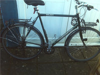 Used The classic 21-gear road/touring bike with superlative build quality. This bicycle has been fitted with carriers front and back and the drop-bars replaced with straights for a comfortable ride. Comes complete with spare wheel and in-frame hub dynamo.Upgrades: