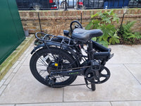 Used This great bike is sure to be a popular choice for people who want the versatility of a larger but still compact 7 speed folding bike. With all the great features of it’s smaller brother “ e-go lite” this bike has the addition of 20” wheels and 7 speed Shimano gears and a more powerful 7AH/252wh Samsung/LG lithium ion battery, it also has a payload of 110kg, weighing in at just under 18kg net it is still a very compact, neat and stylish product. With 3 modes including: Walk, pedal power/assistance (5 levels) and normal bike mode it has everything you need for a modern method of travel. Comes in 3 great colours -Satin black, Gloss red and metallic white. Folded size 82cmx46cmx72cm Fully loaded- Comes complete with charger, front and rear mudguards- Front and rear lights- Disc brakes-bell reflector. Includes additional manufacturer fitted rear rack pannier bag and big bum seat.Upgrades: