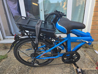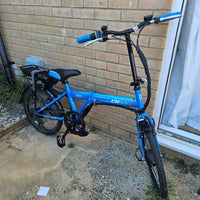 Used The E-plus CH22 is a 20-inch folding electric bicycle designed for urban commuting and easy transport. It features a durable steel folding frame and a removable 24 V 6.5 Ah lithium battery, providing an assisted riding range of up to 25 miles (40 km) on a single charge. The bike is powered by a rear-hub electric motor that complies with UK e-bike regulations (typically rated at 250 W with a maximum assisted speed of 25 km/h). It comes equipped with a 6-speed Shimano gear system for versatile riding on different terrains and three pedal-assist power modes for adjustable support. The CH22 weighs around 24.5 kg, supports a maximum rider weight of about 105 kg, and takes approximately 3–5 hours to fully recharge.Upgrades: