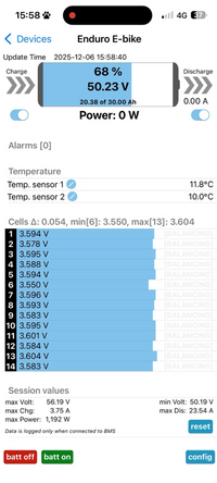 Used Bafang BBS02 750w mid drive motor set up using EggRider display and app for the UK 15.5mph speed limit and nominal 250w road legal spec. 9 pedal assist levels. The EggRider app connects via Bluetooth to the motor controller giving you ride and battery data (see photos), it can also be used to adjust and tune the motor. You can switch to full power off-road mode from the app but not the bike display. 2kWh battery with a Bluetooth battery management system and phone app. 12v DC to DC converter for lights and a usb port. 80-100 miles range. 4 amp charger included. Nuvinci n360 internal geared hub, frictionless gear changing so no need to pedal to change gear, can change gears when stationary. See YouTube walk around. https://youtu.be/S3ATZCqde7Y?si=WOGW3RDqSIkqaT2HUpgrades: