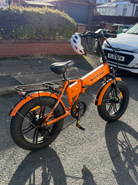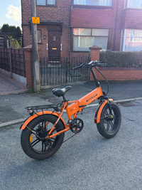 Used ENGWE EP-2 Pro Folding Electric Bike - Orange - 20" Fat Tyre Selling my Engwe EP-2 Pro folding electric bike in bright orange. This e-bike is powerful, comfortable, and versatile—perfect for commuting, weekend rides, or delivery work. The 20" fat tyres provide excellent stability and grip on city roads, gravel, and light oft-road paths. Its foldable frame makes storage or transportation easy, whether in a car boot or compact space. Smooth riding and strong performance make it ideal for anyone seeking a reliable electric bike. Main Features: • Powerful electric motor Removable lithium battery • 20" fat tyres for stability and comfort • Shimano gear system Folding frame design Front suspension for a smoother ride • Rear rack for carrying bags or deliveries Extras Included: • 2 bike locks • 1 helmet • Original charger • Tool kit including wrench and accessories The bike is in good condition and ready to ride. Perfect for commuting, food delivery, or daily use. Collection preferred. Message if interestedUpgrades: