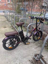 Used I've only had the bike a few months and it's in great condition. It's had a puncture which has been repaired, and I have spare inner tubes for it that I will give with the bike. Fender has slight ding but barely noticeable. Rides well. Comes with battery charger and two spare keys.Upgrades: