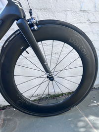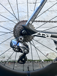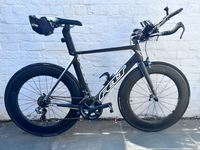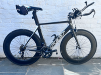 Used Felt AR3 Road Bike Adapted for Tri. Added Profile Design Tri Bars, Tri seat and Panasonic Power Meter. Ultegra Di2 with gear buttons on tri-bars and handles. A 2015 frame that has been used for six full Ironman and other events with only small fall that led to no damage (to rider, or bike!). Not used since Covid, hence the sale, but serviced in 2024. Well loved and in full working order. A stable and fast bike for someone wanting to give long distance tri a go.Upgrades: