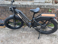 Used Very powerful cargo e-bike. 250W battery with torque sensor, and throttle for extra support. Can take to the hills pretty comfortably. Locked speed at legal limits (15 mph) with the option to unlock when off-road. Extremely comfortable ride, with great suspension. I’m also including the following extras: Fiido original pannier bags (brand new), front basket (brand new) and all original tools and extras that came with it (see photos). Original battery and charger in good condition. 579.9 miles on the clock (see photos). Have serviced it twice since buying it. Breaks were replaced in November 2024. That said, it’s not been used much in 2025 due to not having much time to roam the outdoorsUpgrades: