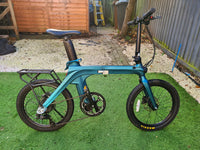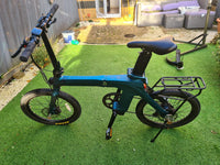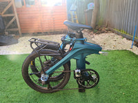 Used Motor & Performance - Motor: Brushless geared hub motor (250 W or 350 W versions) - Torque: ~32 Nm (250 W) - Top Speed (PAS): 25 km/h (15.5 mph) - Pedal Assist: Torque sensor Battery & Range - Battery: Removable 36 V lithium-ion (seatpost integrated) - Capacity: 417.6 Wh - Range: Up to 130 km (80 miles) - Charging Time: ~7 hours Frame & Comfort - Frame Material: Magnesium alloy integrated folding frame - Folding: Compact dual-hinge fold - Wheels: 20″ × 1.95″ CST tires - Gearing: Shimano 7-speed - Brakes: Hydraulic disc brakes Dimensions & Weight - Weight: 19.8 kg - Payload: 120 kg - Size (Unfolded): ~1490 × 580 × 1020 mm - Size (Folded): ~870 × 400 × 740 mm - Rider Height: 155–195 cm Display & Features - LCD display - Anti-theft removable battery system - IP54 water resistance (varies by region) - Digital keypad security device for unlocking battery and power onUpgrades: