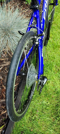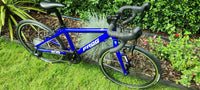 Used Why buy a Frog Road 58? Lightweight 20-inch road bike for road racing, cyclocross & triathlons Narrow and short-drop child-specific handlebars for ease of handling Dual braking control Comfortable and efficient pedalling with patented Frog cranks Youth-specific 9-speed gear shifters featuring FrogFit Technology® Suitable for 6 to 7 years with a recommended inside leg of 52cm-63cm The 20-inch Frog Road 58 kids’ bike is ideal for 6 to 7-year-olds who participate in road racing, cyclocross and triathlons, or who just simply love road riding. This premium children’s road bike is the bike of choice for young, mult-discipline racers. It has a super-lightweight frame, weighing just 8.2kg helping children increase their distance, speed, efficiency and confidence for a high-performance ride. This kids’ road bike comes with slick Kenda road tyres, child-specific short drop handlebars for ease of handling and dual braking control, broadening the bikes capabilities for when in the road-riding position. It is also equipped with 9-speed gears with Microshift short-reach brake levers making braking easier and more comfortable for smaller hands and an ergonomic slimline children’s saddle for a more agile riding experience. This road bike is perfect for kids looking for pace and efficiency while riding or racing.Upgrades: