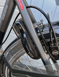 Used This is a crazy bargain, simply because Gazelle is less known in the UK. Last summer I stumbled across this Riese & Muller level bicycle, at a quarter of the price (I paid £1000 second-hand). I had two R&M bikes before, both stolen, and this is better for smoothness of ride, electric gear change and upright position (I'm an old man). The problem was that I 'over did it' and inflamed my knees and stopped riding it at the end of the summer. I don't think I will get back on a bicycle again and would like to sell it – again, at a low price. This is an amazing machine that has done only 402 miles from new and is like new. The frame is LARGE and you must be over 5'10" to be comfortable on the bicycle and you must like the 'upright' position. For really long electric assisted rides, this is totally amazing. I have the correct charger etc. Also, the AXA wheel lock is second to none. PLEASE DO NOT BID IF YOU CAN'T PICK-UP YOURSELF IN RICHMOND, SURREY. I WILL NOT BE ABLE TO POST OR SHIP!Upgrades: