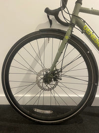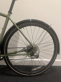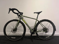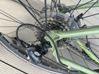 Used 2021 Genesis CDA 20 Gravel Bike – Small Key Specs * Model: Genesis CDA 20 Gravel Bike (Green, 2021) * Size: Small * Purchased: November 2021 Maintenance * Last full service: August 2024 * Routine: Fortnightly checks and light DIY maintenance * Note: Front brake may need a slight tightening Condition Summary The bike is in good working condition with regular upkeep. Cosmetic signs of use include: * Minor paint scuffs on the frame * Scratches on both Shimano Sora shifters (heavier on right) * Slight wear to the bar tape (left side slightly torn) The drivetrain is clean and shifts well, the tyres have plenty of tread left, and the chain is recently replaced. Ideal for commuting or light gravel riding. Detailed Visual Condition * ✅ Frame & Paint: No dents or cracks, light scuffing on high-contact areas * ✅ Tyres: Great condition, puncture-resistant * ✅ Drivetrain: Shimano Sora, expected wear, shifts smoothly * ⚠️ Brakes: Slight front brake adjustment needed (rotor shows use but no rust) * ✅ Saddle & Pedals: Saddle clean; SPD-SL pedals lightly scuffed, fully functional * ✅ Mudguards: Fitted and in good shapeUpgrades: