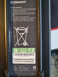 Used Giant EASE-E electric bike in excellent condition hardly used, aluminium frame front suspension, step through frame easy to manoeuvre on very comfortable leather saddle, 8 speed derailleur chain transmission drive, easy to ride. Shorter-range removable 317 watt-hour battery, front motor, front and rear v-brakes, front and rear lights, comes with 2 x rear panniers (clips are broken but can be replaced), 2 x padlocks, rechargeable rear light. Battery has just been serviced with clean bill of health – see receipt Comes complete with removable and lockable battery and charger, owner’s manuals and original bill of sale. Specs : • 317wh giant syncdrive motor 36v : Giant SyncDrive new Silent drive front hub motor • Display: Giant RideControl ONE • Battery: Giant EnergyPak 317, 36V Rechargeable Lithium-Ion • Brake Levers: Tourney TX V brakes w/integrated bell • Rear Derailleur: Shimano Altus • Bike comes with charger and 2 original keys • 2 x rear Panniers (clips broken but can be replaced) • Bike standUpgrades: