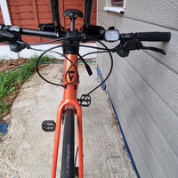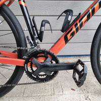 Used GIANT Fastroad Advance 2 Size: M/L Colour: Gloss Helios Orange/Black Frame: Fully Carbon, (Internal cable routing) Mechnical disc brakes Seatpost: Giant D-Fuse, designed to absorb impact. Shifters: Shimano Tiagra, 2x10 Front Derailleur Shimano Tiagra Rear Derailleur Shimano Tiagra Brakes: Tektro Brake Levers: Tektro Cassette Shimano, 11x34 RimsGiant S-R2 Disc wheelset Hubs: Giant alloy Tyres: Giant Gavia Fondo 2, 700x32c Max Tyre Clearance: 700x40C Excellent Condition, only 8 months old. Proof of purchase can be provided at a later date. (Please note, TT bars, top tube bag, lights & bottle holders not included).Upgrades: