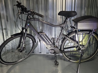 Used This is an excellent entry level electric bike for city use. It is an XL frame, designed for riders 6 foot 2 to 6 foot 4 (approx. 188 -193 CMS). Purchased new in 2020, only one owner. Has done approximately 500 miles. Some cosmetic damage to the paintwork on the frame above the battery and other areas (see photos). There is prising damage to the lip of the battery housing (see photo) from someone trying to steal the battery. No damage to battery or internal connectors. Battery fully operational and fully chargeable. Rear tyre tube has been replaced, all other parts original. Klickfix Top box added to rear carrier, bottle cage attached to frame, and Muddy Fox padded seat cover added too. Comes with Bosch Compact Charger, instruction books, pressure gauge, puncture kit, spare tubes, Bontrager Charger track pump, Kryptonite kryptolok standard U-lock (with 2 keys-registered), and a Burg-Wachter 124C Double Loop black Vinyl Coated Multi-Stranded Braided Steel Cable (12mm x 4.5m). The Haibike sDuro Trekking 1.0 eBike is the base model in the Haibike trekking range from 2020. Built for road and light path use. Including canal paths, bridleways, forest roads & back lanes. It's equipped with essentials like lights, mudguards, pannier rack & a side stand. Popular with leisure & commuters alike, this fast bike rolls well on roads and the hybrid tyre also takes well to light paths. Specs quick guide: * Tektro hydraulic disc brakes front and rear. * Suntour NEX front suspension fork (63mm of travel). Magnesium lowers with lockout. *Fast rolling 700c wheels. * Schwalbe Road Cruiser tyres. * Shimano Acera 8 speed gear system,(trigger shifter's and front chain guide.) * Bosch Active Line Plus eBike system (larger sprocket upfront with no internal gearing. Offering support up to 270% and peak torque levels of 50Nm) * Bosch 400Wh battery, * Bosch Intuvia Display * Front/rear lights (Powered off the Bosch battery). * Mudguards. * Rear rack & side stand. * German build quality. Haibike have finished the sDuro Trekking 1.0 eBike with sealed through axle Haibike disc hubs laced onto strong and lightweight Ryde alloy double wall rims. SPECIFICATIONS FULL. FRAME FAMILY Haibike, SDURO Cross/Trekking, Aluminium 6061, Quick-release 5 x 135mm, Disc brake Post Mount FORK SR Suntour, NEX E25-LO, Lockout, Steel spring, Travel= 63 mm, Steel steerer tube 1 1/8", Quick release 100mm REAR DERAILLEUR Shimano, Acera M360 SHIFT LEVER Shimano, Altus M310, Rapidfire, 8 speed SPROCKET SunRace, CSM55, 11 - 34 teeth BOTTOM BRACKET integrated in the motor CRANK ARM Haibike, Forged, Aluminium CHAIN KMC, X8 CHAINRING Haibike Components, Aluminium, 38 teeth BRAKE LEVER Tektro, T275, Aluminium BRAKE DISC (FRONT) Tektro, TR180 BRAKE (FRONT) Tektro, T275, 180 mm, 2-piston disc brake BRAKE DISC (REAR) Tektro, TR160 BRAKE (REAR) Tektro, T275, 160 mm, 2-piston disc brake TUBE Presta valve TYRE Schwalbe, Road Cruiser , 42-622, 28" x 1.60" RIM Ryde, Zac421, hollow rim, Aluminium FRONT WHEEL HUB Haibike Components, TheHub +, 6-bolt standard REAR WHEEL HUB Haibike Components, 6-bolt standard SPOKES Sapim, Leader, black HANDLEBAR Haibike Components, TheBar +, 720 mm GRIPS XLC, Comfort bo3 STEM Haibike Components, TheStem +, A-head, Bar bore: 31.8 mm, 7° HEADSET Feimin, A-Head Tapered, ball bearing SADDLE Haibike Components, TheSaddle SEAT POST Haibike Components, The Seatpost +, Patent, 31.6 mm, Aluminium PEDALS VP, E461, Aluminium, with Reflector HEADLIGHT Trelock, Bike - i Veo LS230, 20 lm REAR LIGHT AXA, Blueline DYNAMO via system battery CARRIER system carrier, 25.0 kg FENDERS SKS, Chromoplastics STAND Ursus, Mooi, Rear stand CLAMPING RING Quick release, 34.9 mm ENGINE Bosch, Active Plus, 250 W, 50 Nm, 25 km/h WEIGHT (KG) 23.4 kg PERMITTED TOTAL WEIGHT 130.0 kg BATTERY Bosch, PowerPack, 400 WhUpgrades: