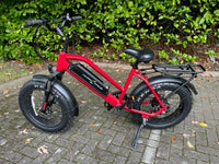 Used Lovely rare 20inch Fat Tyre ebike colour Fire Engine Red, a very popular all-terrain machine, This bike has been very well-maintained and will be delivered fully serviced .The bike is driven by a powerful rear hub motor and run by a 36V 13Ah battery. a Gold standard lock with 2 keys, a charger, 2 x battery release keys, Recommended Rider Height - 5’4 - 6’2 Frame Size - 17” (unisex medium) Bike Weight -26.8 kg (including battery) Charging Time - 4-6 Hours Removable Batteries - Yes Battery Keys - Two Charger - Yes Battery - 450 WH Tyre Size - 20” x 4” Forks - Suspension Front Hand Grips - Soft touch ergonomic Mudguards - Yes Gears - 6 Electric Assist Levels: 5 Pannier Rack - Yes Kick Stand - YesUpgrades: