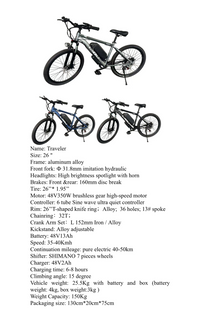 Used Traveler 26” Electric Bike – Brand New The Traveler 26” Electric Bike is a powerful and reliable e-bike designed for daily commuting and comfortable riding. Built with a strong aluminium alloy frame, it combines durability with a lightweight design. The bike is equipped with a 48V 350W high-speed brushless geared motor and a 48V 13Ah battery, allowing a top speed of 35–40 km/h and a pure electric range of 40–50 km on a full charge. Charging time is approximately 6–8 hours using the 48V 2Ah charger. For smooth control, the bike features a SHIMANO 7-speed gear system, 160 mm front and rear disc brakes, and 26” × 1.95” tyres mounted on 26” alloy rims with 36 holes and 13# spokes. The Ф31.8 mm imitation hydraulic front fork helps absorb shocks for a more comfortable ride. It also includes a high-brightness headlight with horn, adjustable alloy kickstand, 32T chainring, and 152 mm iron/alloy crank arm set. The bike weighs approximately 25.5 kg including battery and packaging (battery weight 4 kg, box weight 3 kg) and supports a maximum load capacity of 150 kg. It can handle slopes of up to 15 degrees, making it suitable for urban roads and light hills. The packaging size is 130 × 20 × 75 cm. This brand-new electric bike comes with a 6-month warranty on the motor and battery. Available colours: Black, Blue, and Grey.Upgrades: