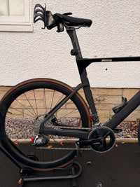 Used Carbon Aero Road Bike - Merida Reacto 7000, Large 56cm (RRP £4,350) – IMMACULATE Condition Purchased January 2024 and used to train and complete a 70.3 triathlon in the summer of 2024. This bike has been meticulously cared for and is in outstanding condition, having never been crashed or damaged. Since the triathlon, it has seen very little use (fewer than 5 outdoor rides in 2025). Always stored indoors and cleaned after every ride. Specification highlights: • High quality carbon aero frame • Carbon wheels with Continental Grand Prix 5000 S TR tubeless tyres (700 x 28) • SRAM Rival AXS 12-speed wireless electronic groupset • SRAM Rival AXS power meter (165mm crankset) • SRAM Rival hydraulic disc brakes • Comes with spare aero handlebars. I swapped from original ones to allow for tri bars to fit on • Size L Note: Tri bars, bottle cages, and pedals are not included, but may be negotiable depending on price.Upgrades: