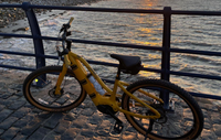 Used A solid bike with a good battery life, used but like new, a very comfortable bike to ride with upgraded tires for a smoother ride, this bike is a cassetteless gearing set up compromising of a 7 speed set up and a max speed of 25kmp, with a 105 mile range, this bike will connect to an app on your phone to measure your mileage, 1500 miles on the bike and comes with 2 keys for the battery pack and original fully working chargerUpgrades: