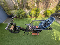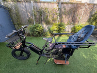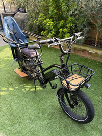 Used Electric longtail cargo bike in black. Great for carrying one or two children. Includes Front basket (£89 new), Caboose (£129 new), 2 deck pads (£55 new)(cushioning). Child seat - Yepp Thule Easy Fit Nexxt Maxi mount child seat (£120 new). 60km range. Some marking on the running boards from weather as pictured. Listed owners on Mybikeregister and will transfer on purchase. Purchased from 'About the Bike Limited' in March 2023 and have receipt for bike and all accessories. Weight of bike: 33 kg Length of bike: 197 cm Wheel sizes: 20 inch wheels Tyres: CST puncture resistant 20x3" with reflective strips Motor: 250W 48V brushless rear hub motor Max torque: 65 Nm Gears: Shimano 7 speed Brakes: hydraulic disk brakes Height of rider: not specified Max weight of cargo + rider: 210 kg Max rider weight: not specified Max load rear rack: 125 kgUpgrades: