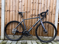 Used Orange rx9 bought as a frame set and built up by myself, never used off road, the bike is in excellent condition. New levers, callipers, rotors, cassette and chain added last summer. Shimano 105 11 speed levers, mechs and hydraulic brakes, praxis works alba chainset 32/42, 170 crank length, hunt gravel wheels with schwalbe g1 tyres 35mm.Upgrades: