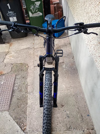 Used Bike was brought brand new 4 weeks ago for commuting purposes but I've now relocated. The bike tyres have been converted to tubeless. It's like new bike. It's been ridden only on flat tarmac and has been charged once. In the final photo you can see some scratches on the frame, this was done by Halfords.Upgrades: