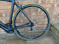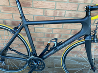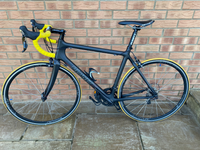 Used Excellent condition limited edition Tour de Yorkshire road bike, hardly used. High quality carbon frame. Used on less than 6 occasions, less than 100 miles cycling in total. Just one scratch as shown in the photos. Great bike, excellent spec, built to order, basically unused and regrettably have decided to sell due to it sitting in my garage.Upgrades: