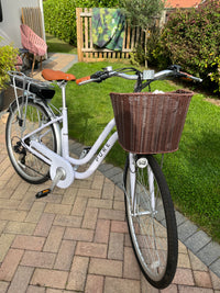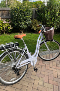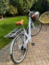Pure Free Step gives you comfort, style and power all in one, with a suite of thoughtfully designed accessories. Including mud and chain guards, pannier rack, kickstand, integrated lights and a stylish front basket. Its 250W rear hub motor combined with up to 28 mile / 45km range takes the effort out of riding. No need to break a sweat. Relaxed, upright position for comfortable riding Up to 28 miles / 45km tested assisted range, perfect for urban commuting and leisure riding 250W rear wheel hub motor system with three assistance settings (15, 20 and 25km/h cut-offs) 6-hour charge time, 80% charge in just 4.5 hours Rack-mounted battery 7-speed Shimano Tourney™️ gearing for easy hill climbing Special stylish white finish with tan coloured saddle and handlebar grips Matching tan coloured front basket for convenient item carrying Intuitive handlebar-mounted control unit Sturdy Pure Free City steel frame Fitted with mudguards and chainguard for protection from road spray and oil marks CST 38mm tyres for all-weather gripUpgrades: