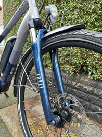 Used Ready to ride Raleigh Array e-bike, 80 miles on the clock only! Excellent as a commuter or a robust run about town bike. I work at home now so it’s not getting any use. Bike is in perfect condition, would suit a rider between 5 ft 2” and 6 ft. - Exceptionally clean and like new. - Sleek aluminium crossbar frame - Quiet,smooth 400Wh Suntour HESC rear hub motor - Reliable 7 Speed Shimano gears - 3 power modes, Eco, Sport and Turbo - Removable battery for easy charging and better theft protection - plus 2 keys and registration system via suntour - Front and rear lights run off the battery - Charger with battery full indicator - Rear rack for pannier bags for shopping or work - Tektro Mechanical disc brakes - Suntour HESC rear hub motor - Max range 60 miles per charge - Weight 20kg - Max rider weight 120kg - Kickstand - please note GPS stickers for show only! Put the thieves off…🙈 Happy for people to come and view and try. Send me a message. Please come and test ride. Give me a call!Upgrades: