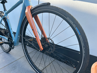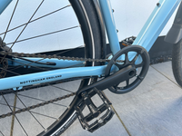 Used The Raleigh Trace E-bike. With a 250W integral battery, (UK compliant), it offers a smooth and effortless ride. The flat handlebar, disc brake system and 9-speed derailleur gears make it easy to handle and navigate. The lightweight aluminium frame and 700C wheels, ensure a comfortable and stable riding experience. Available in a blue / copper colour, this unisex adult bike is a reliable and practical choice for commuting or leisure rides. Additional details include: 2023 model Tektro R 28 hydraulic disc brakes 6061 Aluminium frame with carbon fork Rear carrier Front & Rear light set Fitted mudguards Assistance control on crossbar or phone app Lightweight 16.5kgs Charger (with original packaging) Bluetooth connectivity 50 mile range Upgraded tyres to Schwalbe Marathon Plus In excellent condition. Visible scratch to rear of the saddle as indicated in photograph.Upgrades: