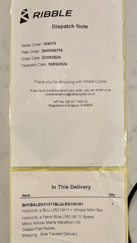 Used Ribble Hybrid AL e Men’s Electric Bike. Frame size large. Mahle X35 motor with choice of 3 power settings and battery level indicator. Very comfortable saddle. Purchased new in Sept 2024. Charger and original instructions included. Bike has not been used over winter and has been stored inside. Lightly used. Excellent condition.Upgrades: