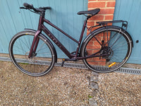 Used Ribble Hybrid AL e Step Through women's electric bicycle, 2024. Lightweight, stable and confortable with built in battery. Excellent for city, leisure or shopping rides. Smooth and solid handling with powerful quiet hub motor. 18 months old, purchased 2024 but only ridden 3x short trips. Fabulous almost as new condition - Deep Berry colour - 28in wheels with 37-622 Schwalbe tyres - NX 11 Speed SRAM Wheelset - 40Nm 250W Mavic Allroad Mahle Marathon HG - Medium size light 15kg aluminium frame - IWoC Trio 3 level assistance control. - Disc brakes - Pannier rack - on BikeRegisterUpgrades: