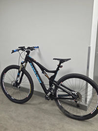 Used This is a Santa Cruz Tallboy C carbon fiber mountain bike, likely a 2015 model. • It features 29-inch wheels and a full suspension setup with a Fox fork and rear shock. • The bike utilizes Santa Cruz's VPP (Virtual Pivot Point) suspension technology, known for its pedaling efficiency. • It has external cable routing for easier maintenance. • The frame is made from Santa Cruz's high-grade carbon fiber material.Upgrades: