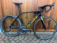 Used Scott Addict 30 (Size 54cm) full-carbon road bike, in very good condition and with very little use. This is a lightweight, responsive, and fast road bike ideal for fitness riding, club rides, or racing. It has been well looked after and stored indoors, with only occasional use. The bike features a Syncros Race 24 front wheel and an upgraded Syncros RR1.5 full-carbon rear wheel, both fitted with brand-new Schwalbe tyres for excellent grip and durability. It runs a complete Shimano Tiagra 10-speed groupset that shifts smoothly and reliably. Look clip-in pedals are also included with the sale. This is a fantastic, ready-to-ride setup for anyone wanting a high-performance carbon bike at a great price. ⸻ Key Features • Frame Size: 54cm • Frame: Scott Addict 30 – Full Carbon • Fork: Carbon • Groupset: Shimano Tiagra (10-speed) – full groupset • Front Wheel: Syncros Race 24 • Rear Wheel: Upgraded Syncros RR1.5 carbon rear wheel • Tyres: Brand-new Schwalbe tyres • Handlebars & Stem: Syncros • Pedals: Look clip-in pedals included • Brakes: Rim brakes • Condition: Very good; minimal use; well maintained • Colour: Black with yellow Scott graphics ⸻ Notes • Bike is fully functional and ready to ride. • Only very light signs of use — no cracks or structural issues.Upgrades: