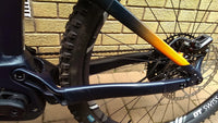 Used The bike's only been used for 2 miles in the last 12 months and has only been used for a total of 425 miles. Condition is A+ due to very light use as noted and comes with charger, and 2 keys are also included. The rear rim has had a £450 upgrade to a tubeless 29" DT Swiss HX 1501 rim as shown . The size is 21.5" from the centre of the bottom bracket to the top of the seat post tube and 42" from the front wheel at ground to the handle bars. XL Frame(21"-22"): 6'1"-6'3" approx - Rear Rim: Tubeless 29" DT Swiss HX 1501 Frame: Genius eRIDE Alu / 27.5 "and 29" compatible - Fork: RockShox 35 Gold RL 150 mm - Shock: X-Fusion Nude, 150 mm, TwinLoc - Rear derailleur: SRAM SX Eagle 12 gears - Motor: Bosch Performance CX GEN 4 (up to 1000 Wh) - Battery: 500Wh PowerTube Battery - Brakes: Shimano 4-piston - Schwalbe Kevlar tires - Syncros seat post and components - Charger: 4A standard charger (800g / approx.4.9 h for PowerTube 625) - Bosch lighting cable pre-installed F&R - Weight according to the manufacturer: 23 kg.Upgrades: