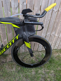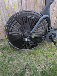 Used SRAM red eTap 11 speed 1x set-up CeramicSpeed OSPW Quark Powermeter D2Z chainring plus aero chain catcher Lightweight Autobahn Disc (tubular) SRAM Red cassette Enve 8.9 front wheel with Chris King Hub (tubular) Prologo TT saddle Profile drinks bottle Modified front end set up by Matt BottrillUpgrades: