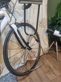 Used Fast bike it has carbon fibre forks and seat post Shimano Sora derailer 24 gears extremely light and well balanced a few scuff marks but generally a well looked after bike tinnitus has affected my balance forcing a reluctant sale it will come with rechargeable front and rear lights a d lock with extra long security cable and a high pressure stand up pumpUpgrades: