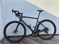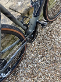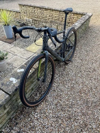 Used Specialized Diverge Comp Carbon Gravel Bike 58cm - Olive/oak Original Purchase invoice £4199.00 Will have a full service provided prior to delivery The Specialized Diverge Comp Carbon 58cm SRAM Rival 2022 in Olive/Oak is a top-of-the-line gravel bike. Made from carbon fibre, this 11-speed bike boasts tubeless tyres, hydraulic disc brakes, and a future shock 2.0 adjustable suspension There are a few surface scratches to the right side of front forks and to end/side of left brake leaver .and scratches to crank.. see images for details Detail specification as follows: Specifications Frameset Specialized Diverge FACT 9r carbon, SWAT™ Door integration, Future Shock suspension, threaded BB, internal routing, 12x142mm thru-axle, flat-mount disc Fork Future Shock 2.0 w/ Damper, Smooth Boot, FACT carbon, 12x100 mm thru-axle, flat-mount Wheels Front: DT Swiss G540 rim, 24mm internal width, tubeless ready, 24h, Specialized full sealed bearing thru axle hub, centerlock disc, DT Swiss Champion 14G stainless steel spokes, DT Swiss brass nipples Rear: DT Swiss G540 rim, 24mm internal width, tubeless ready, 24h, Specialized full sealed bearing thru axle hub, centerlock disc, DT Swiss Champion 14G stainless steel spokes, DT Swiss brass nipples Tires Front: Pathfinder Pro 2BR, Tan sidewall, 700x42 Rear: Pathfinder Pro 2BR, Tan sidewall, 700x42 Drivetrain Chain KMC X11 Extra Lightweight, 11-speed Crank SRAM Rival 1x, 40T Bottom Bracket SRAM GXP Rear Derailleur SRAM Rival 1, long cage Shifters SRAM Rival 1, hydraulic Components Brakeset SRAM Rival, hydraulic disc, 160mm CenterLine rotor Handlebar Specialized Adventure Gear Hover, 103mm drop x 70mm reach x 12º flare Saddle Body Geometry Power Sport, steel rails Seatpost Roval Terra Carbon Seat Post, 20mm Offset Stem Future Stem, Comp Pedals not includedUpgrades: